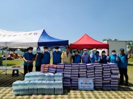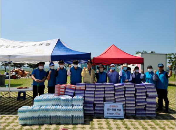 밀양시는 건강보험심사평가원 창원지원(지원장 김미정)에서 19일 장마철 집중호우로 밀양아리랑 오토캠핑장으로 밀려온 부유물 등 수해 쓰레기 수거하는 자원봉사자들을 위해 장화 100족과 생수 800개(시가 200만원 상당)를 지원했다고 전했다.