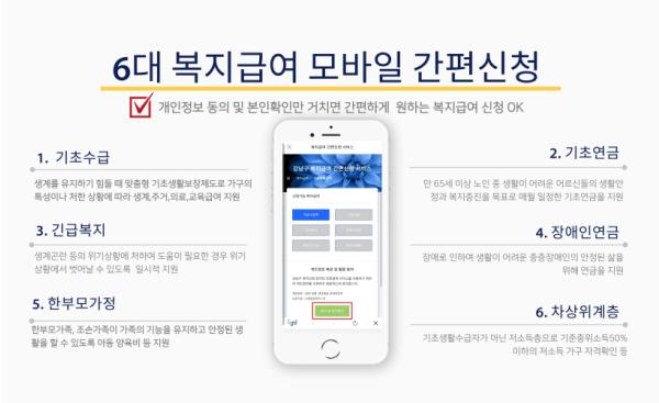 이번 서비스를 통해 ‘더강남’앱을 통한 휴대폰 인증과 간단한 정보 입력만으로 복지급여를 신청할 수 있으며, 항목은 ▲기초생활보장 ▲긴급복지 ▲기초연금 ▲장애인연금 ▲한부모가족 ▲차상위계층 등으로 구분된다.