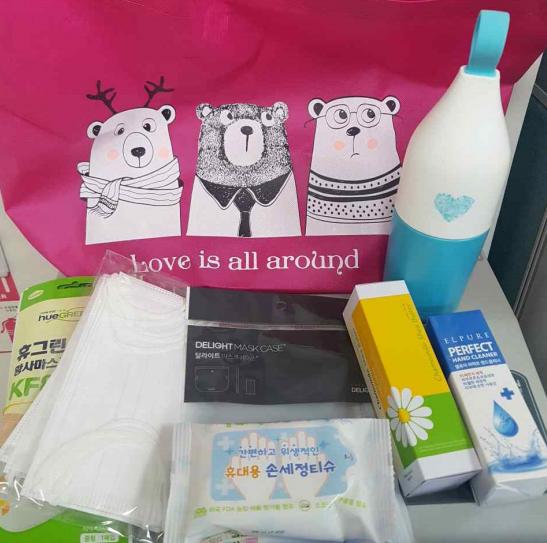연령별로 △취학아동(만8~13세) △유아(만4~7세) △영아(만1~3세)로 나누어 손소독제·마스크는 공통 제공하고, 취학아동에게는 학교생활에 필요한 보온병·마스크 케이스·물티슈·파우치 등이, 유아에게는 동화책과 스티커북 등이, 영아에게는 팝업북 등이 담긴 꾸러미가 제공된다.