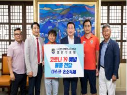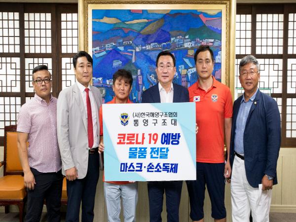 (사)한국해양구조협회 통영구조대(대장 조창국)는 8월 18일 통영시를 방문하여 코로나19 재확산에 따른 예방물품으로 손소독제(500㎖) 120개와 KF94마스크 250매를 기탁했다.