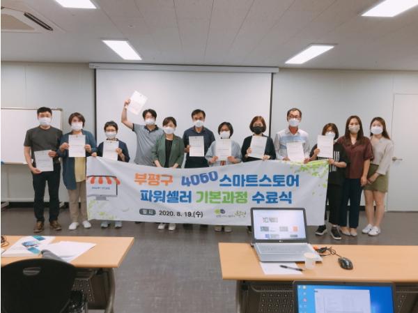부평구(구청장 차준택)는 지난 19일 지역에 위치한 다운타운 일레븐빌딩 교육장에서 ‘4060스마트스토어 파워셀러 양성사업’ 교육 수료식을 진행했다.
