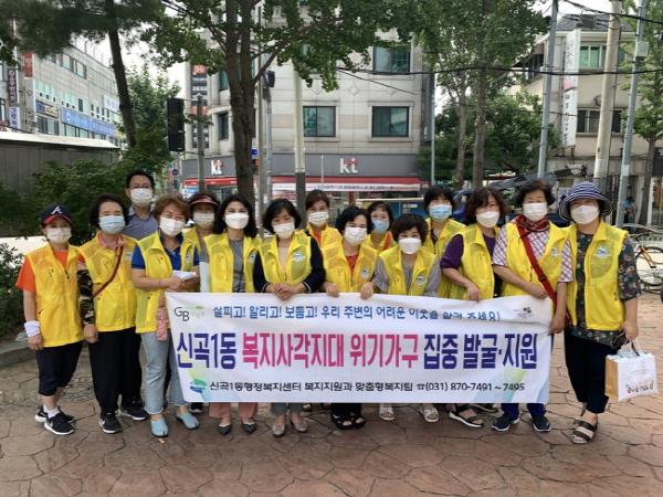 의정부시 신곡1동 행정복지센터(권역동국장 조민식)는 지난 19일 이웃사랑을 실천하는 봉사자 모임인 ‘신곡권역 희망넝쿨단’과 함께 장마가 끝나고 본격적으로 찾아온 무더위에 대비, 폭염 취약 가구 등 복지사각지대 발굴 홍보 캠페인을 실시했다.