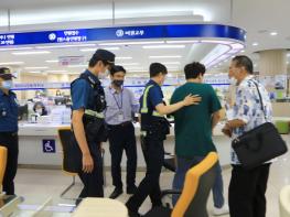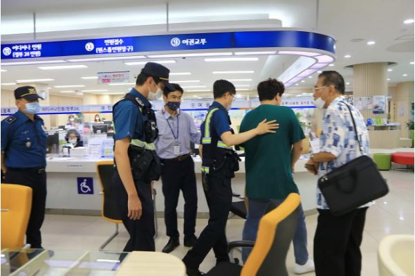 이날 모의훈련은 비상벨 작동에 따른 단계별 시나리오에 대한 점검과 신속한 대응능력 강화를 위해 실시된 것으로, 민원인이 민원창구직원에게 위협을 가하는 상황을 가정하여 진행됐다.