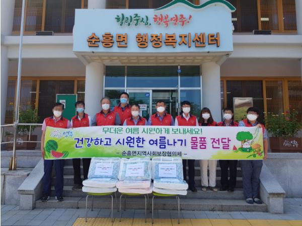 경북 영주시 순흥면지역사회보장협의체(공동위원장 홍성문, 황만기)는 지난 20일 연일 폭염이 기승을 부리는 가운데 폭염에 취약한 고령자와 만성질환자의 건강관리를 위해 ‘건강하고 시원한 여름나기 물품’을 전달했다.