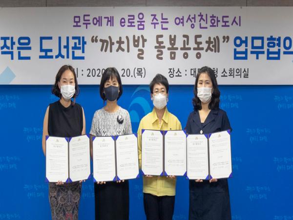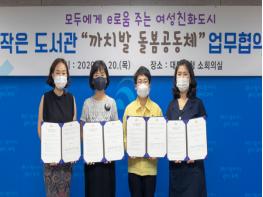 대전 대덕구(구청장 박정현)는 20일 구청에서 사립 작은도서관 3곳(꿈사랑, 마루, 또바기)과 아동 틈새 돌봄 사업의 일환인 ‘까치발 돌봄 공동체’ 업무 협약을 맺었다.
