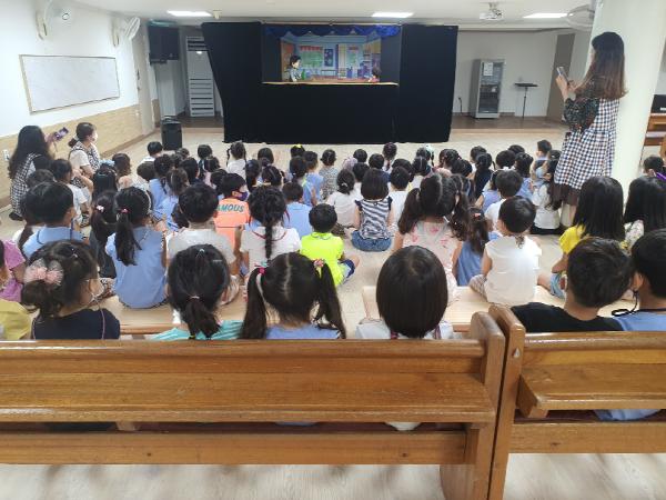 경상남도아동보호전문기관은8.20일 창원시 진해구 소재 동부유치원 원아들이 아동학대 예방인형극 「소중한 우리 아이를 지켜주세요」공연을 관람하였다.