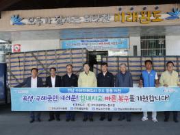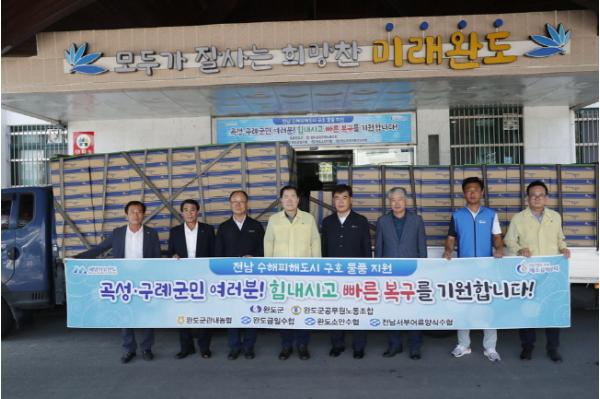 완도군이 최근 집중호우로 피해를 입은 전남도내 수해 지역에 구호 물품을 지원하고, 피해 복구 작업에 힘을 보탰다.
