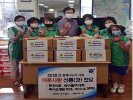 부산 남구 문현3동 새마을부녀회(회장 정귀분)는 8월 20일(목) 홀로어르신 및 중장년 1인 세대에 ‘코로나19 극복’을 위한 희망꾸러미 70개를 전달하였다.