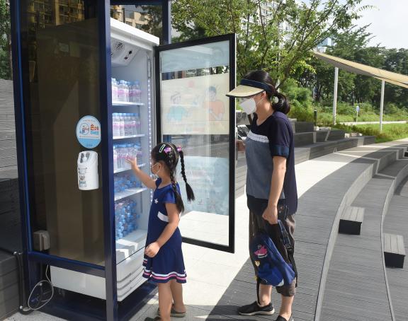 오늘 31일까지 운영하는 냉장고에는 오전 10시와 오후 4시 300㎖ 생수 300개씩 총 600개가 비치된다. 날씨 상황에 따라 생수 보충은 탄력적으로 운영한다.