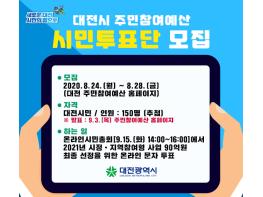 대전시가 2021년 주민참여예산 시민 제안 공모사업 최종선정을 위한 시민 투표단 150명을 공개 모집한다.
