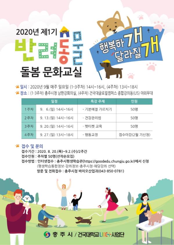 충주시가 2020년 제1기 반려동물 돌봄문화교실 ‘행복하개, 달라질개' 교육생을 선착순 모집한다고 20일 밝혔다.