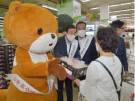 충주시가 복숭아 출하기를 맞아 지역에서 생산된 맛 좋고 품질 좋은 하늘작 충주복숭아 홍보를 위해 판촉 행사에 나섰다.