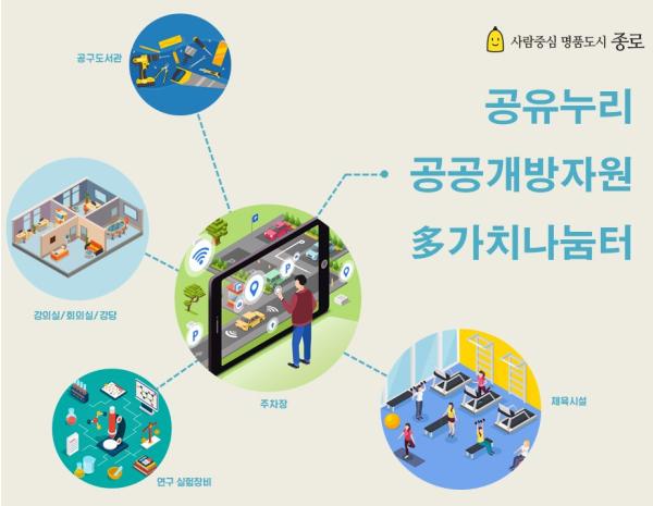 종로구가 현재 관리하는 공유자원은 총 68개로 ▲공구도서관 ▲동주민센터 내 다목적실, 강당, 회의실 등 ▲구청사 주차장 ▲올림픽기념국민생활관 주차장 ▲구민회관 주차장 ▲구민회관 체육시설 ▲무악다솜방 ▲종로장애인복지관 내 강당 및 회의실 등이 있다.