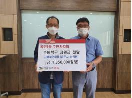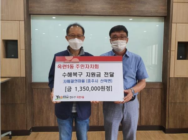 옥련1동 주민자치회(회장 김영채)는 집중호우로 인한 심각한 피해로 특별재난지역으로 선포된 자매결연지 충주시 산척면에 지난 20일 수해복구성금 135만원을 전달했다.