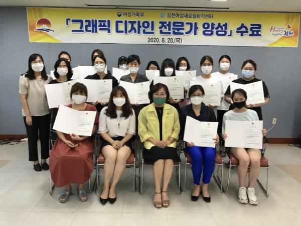 김천시 평생교육원에서 운영하는 여성새로일하기센터에서 2020. 8. 20 (목) “그래픽 디자인 전문가 양성과정” 수료식을 개최하였다.