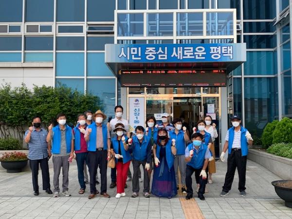 평택시 신장1동 주민자치위원회는 지난 20일 코로나19 극복을 위해 신장근린공원에 대한 집중 방역 봉사활동을 실시했다.