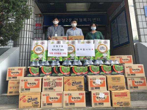 익명의 기부자는 신장2동의 어려운 독거어르신을 위해 사용해달라는 의사만 전달하고 물품을 배송시켰다.