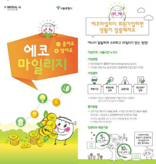 신규 가입을 원하는 경우 에코마일리지 홈페이지(http://ecomileage.seoul.go.kr)에서 신청할 수 있다. 또한 구청 환경과 및 동주민센터에 방문하거나 전화해 접수하는 것도 가능하다.