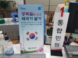 또 동 행정복지센터 내 홍보 배너와 현수막, ‘독립운동의 역사와 함께한 태극기 변천사’ 게시판을 설치해 주민들에게 태극기의 의미를 전달하고 광복절 태극기 달기에 참여하도록 독려했다.