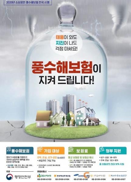 아울러 보험가입자가 부담해야 하는 보험료의 일부를 국가 및 지자체에서 보험 가입자의 소득 수준에 따라 52.5~92%까지 보조해 주기 때문에 저렴한 보험료로 풍수해를 대비할 수 있으며, 보험 가입 희망자는 보험사에 개별적으로 가입하거나 구 행정복지센터 및 안전총괄과를 통해 단체로 가입할 수 있다.
