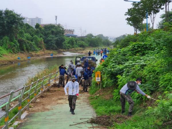 포천천 산책로와 비탈면, 고모호수공원, 주요 시가지 등을 청소하기 위해 민·관·군 200여 명이 참여했으며, 손길이 미치지 못하는 곳까지 구석구석 청소해 약 10톤 분량의 수해쓰레기를 수거했다.