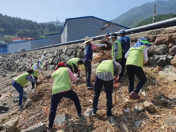 이날 참여자들은 초목류가 많이 떠밀려온 하양지마을, 수월리 보건진료소, 마레미오펜션, 잠포학교 앞 해안변의 갈대와 폐스티로폼 부표 등을 집중 수거 하여 약 3톤의 해양쓰레기를 수거했다.