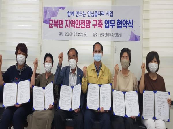 군북면지역사회보장협의체, 군북면이장협의회, 군북면 적십자봉사회, 군북면 새마을부녀회, 군북면 생활개선회가 참여한 이날 협약식은 복지사각지대 없는 촘촘한 지역자립형 인적 안전망을 구축하기 위해 마련됐다.