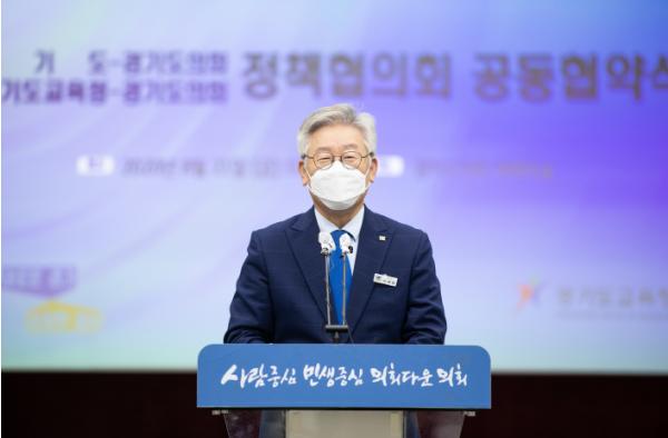 이재명 지사는 인사말을 통해 “경기도의회는 소통과 협치의 모범적 사례라고 생각한다”며 “대표적인 것이 지역화폐로 지급한 경기도 재난기본소득”이라고 말했다.