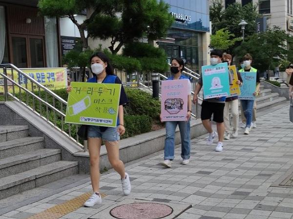 인천시 남동구자원봉사센터(센터장 류호인) 대학생봉사단은 최근 코로나19의 지역사회 재확산 움직임에 따라 감염 예방을 위한 사회적 거리두기 캠페인을 벌였다고 21일 밝혔다.