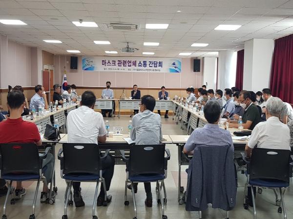 구미시(시장 장세용)는 8. 20(금) 15:00 구미비즈니스지원센터 중회의실에서 제조, 장비, 유통 분야 마스크 관련 기업 관계자 30여명이 모인 가운데 (사)구미중소기업협의회(회장 김영호)와 공동 주관으로 『마스크 관련 업체 소통간담회』를 가졌다.