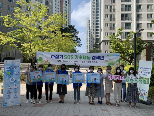 구미시(시장 장세용)는 ‘20. 8. 21.(금) 14:00부터 관내 아파트를 대상으로 구미시 및 온실가스 진단 컨설턴트 등 20여명이 참여한 가운데, 일상생활 속에서 우리가 할 수 있는 저탄소 녹색생활에 대한 시민의식 확산을 위해 ’하절기 SOS 기후행동 캠페인‘을 실시하였다.