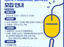 신청은 8월 21일까지 한국정보화진흥원 홈페이지(www.디지털포용.kr) 또는 전화(1588-2670)를 통해 가능하다. 특히 교육생 뿐 아니라 강사와 서포터즈도 모집하고 있으므로 관심 있는 사람이라면 놓치지 않아야 한다. 기타 자세한 사항은 곡성군청 정보통신팀(061-360-8299)으로 문의하면 된다.