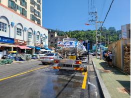 시는 9월까지 폭염특보(주의보, 경보)가 지속 될 것으로 전망됨에 따라 차량운행 및 인구이동이 많은 4개 권역(고현, 장평, 옥포, 장승포동)을 중심으로 매일 살수차 3대를 집중 운영한다.