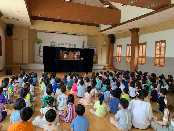 경남서부아동보호전문기관(관장 송동호)은 08.21일 진주시 하대동 소재 숲속나라유치원(원장 황연옥)에 재원중인 277명 아동들을 대상으로 아동학대 예방 인형극 「소중한 어린이들을 지켜주세요」 공연을 실시하였다.