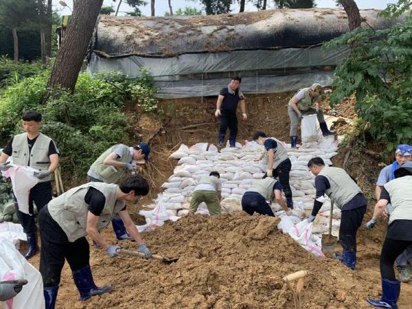 자원봉사에는 공단 직원 13명이 참여했다. 토사 유출 방지와 추가 피해 예방을 위해 참여자들은 흘러내린 토사를 모아 모래주머니를 만든 뒤 제작품을 무너진 토사 경사면에 쌓았다.