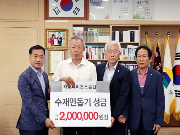 하동군은 지난 21일 하동라이온스클럽(회장 박귀택)이 군수 집무실을 찾아 침수피해를 입은 군민에게 조금이나마 위로가 되고 싶다며 수해 기부금 200만원을 기탁했다고 24일 밝혔다.