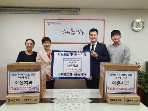 만월종합사회복지관(관장 임경임)에서는 예온치과(원장 장선호)로부터 코로나-19 극복을 위한 덴탈마스크 2,500장을 전달 받았다고 밝혔다.