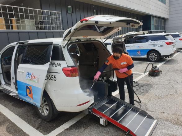 또한, 교통약자이동지원차량은 감염병에 취약한 노인이나 장애인 등이 많이 이용하므로 1일 1회 전 차량 소독, 차량 내 손소독제 비치, 운전자 마스크 착용 생활화 등 평소에도 코로나19 감염병 예방을 위해 만전을 기하고 있다.