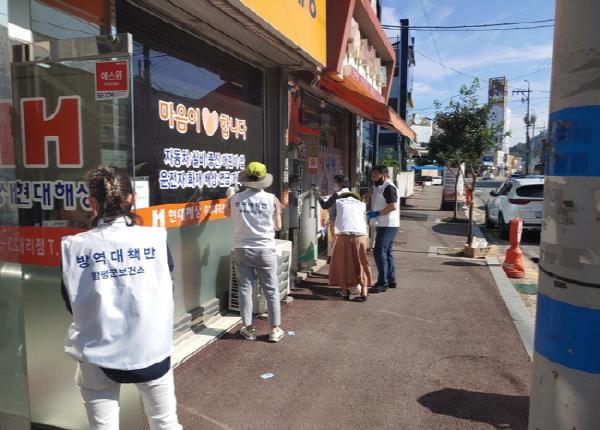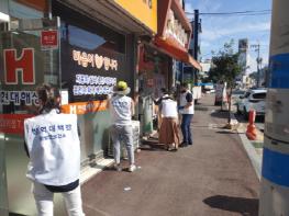 연일 300명 안팎의 신규 확진자가 발생하면서 코로나19 재확산 우려가 현실화되고 있는 가운데 전남 함평군보건소 방역대책반 관계자들이 지난 20일부터 이틀간 지역 다중이용시설 947개소를 대상으로 집중 방역소독을 실시하고 ‘도내 마스크 착용 의무화’ 스티커를 부착했다.
