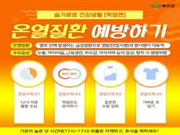 이에 따라 군은 온열질환 예방 및 환자발생시 조치방법으로 ▲규칙적인 수분섭취하기 ▲초기증상 시 시원한곳으로 이동해 휴식 취하기 ▲폭염주의보·경보가 발령되면 위험시간대(12시~17시) 야외활동 줄이기 ▲활동이 불가피한 경우 챙이 넓은 모자, 밝고 헐렁한 옷 등 착용하기 ▲환자 발생 즉시 시원한곳으로 옮긴 후 의료기관으로 이송할 것 등을 당부했다.