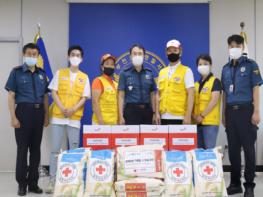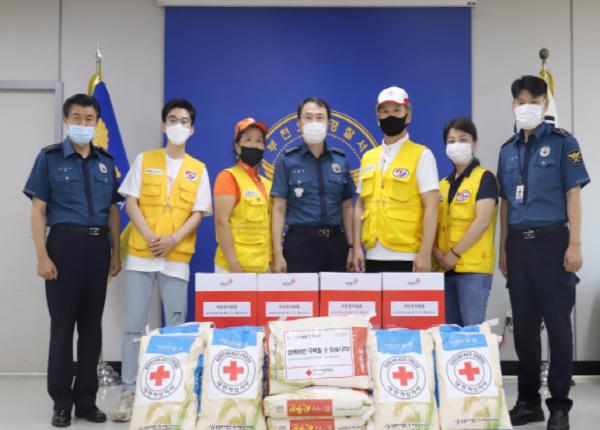 부천오정경찰서는 8. 20.(목) 코로나19 극복을 위해 대한적십자사 부천지회와 협업하여 순직경찰관 유가족 12세대에게 코로나19 대응 긴급지원 물품(각 세대마다 쌀10kg 1포, 희망풍차물품 1박스)을 전달했다.