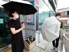 1인 그늘막은 폭염 대비뿐만 아니라 갑자기 내리는 비에도 대비할 수 있도록 남?여 구분 없이 사용 가능한 암막 양우산으로 준비됐다. 각 동마다 300~350여 개가 비치된 상태다.