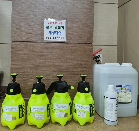 구미시 광평동(동장 서춘희)은 신종 코로나바이러스 감염증(코로나-19) 확산 차단을 위해 다중이용시설에 소독분무기와 소독제를 무상 대여한다.