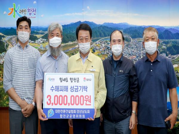 지난 24일 대한전문건설협회 경상남도회·합천군 운영위원회는 수해피해로 힘든 시기를 겪고 있는 수해민에 써달라며 합천군(군수 문준희)에 수해복구성금 3백만원을 기탁했다.