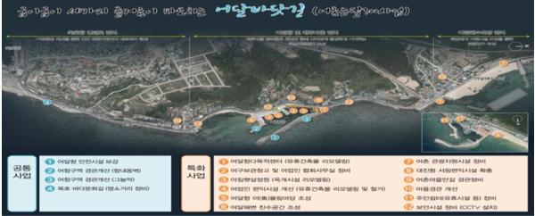 어달항 어촌뉴딜 특화사업인 다목적센터, 아침햇살 정원 등은 내년 12월까지 마무리할 계획이다.
