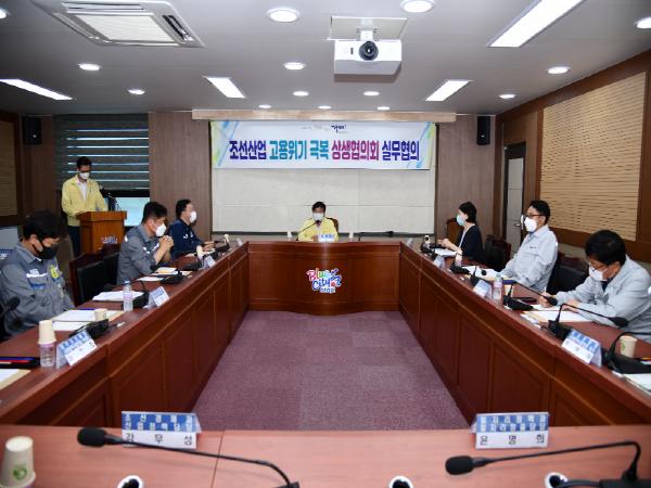 거제시는 24일, 조선업 고용위기 극복을 위한 단계적 절차로 범시민 상생협의회를 통한 실무회의를 개최했다.