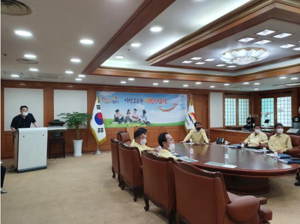 김천시(시장 김충섭)는 8월 24일 시청 접견실에서 김충섭 시장과 국소장 등 10여명이 참석한 가운데 “김천시 축제개발 연구용역 중간보고회”를 개최했다.