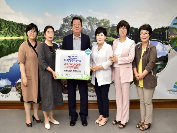 제천여고총동문회(회장 목애균)는 지난 21일 제천시청을 방문해 집중호우로 피해를 입은 수해민을 위해 써 달라며 재난안전취약계층 지원금 300만원을 전달했다.