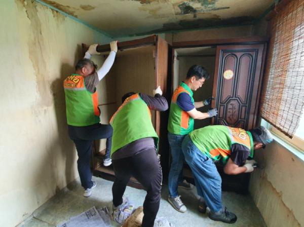 피해세대를 돕기 위해 이종성 서정동장과 권오운 방재단장 및 단원들이 직접 현장에 나가 침수된 가전제품 및 가구 등 생활용품을 폐기처리하고 방역소독도 실시했다.
