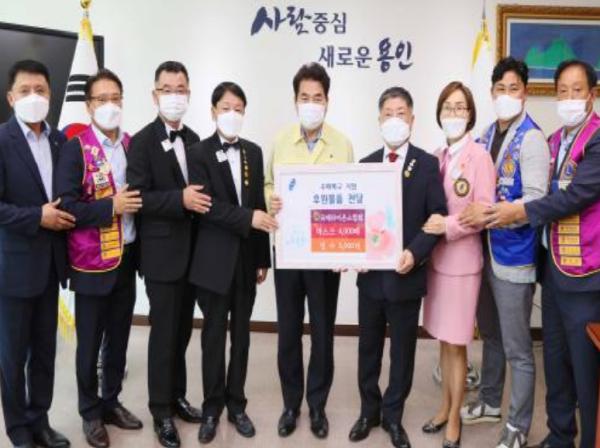 용인시는 24일 김의겸 국제라이온스협회 총재와 임직원들이 시를 방문해 수해 복구에 애쓰는 봉사자들에게 전해달라며 500만원 상당의 마스크와 생수를 기탁했다고 밝혔다.